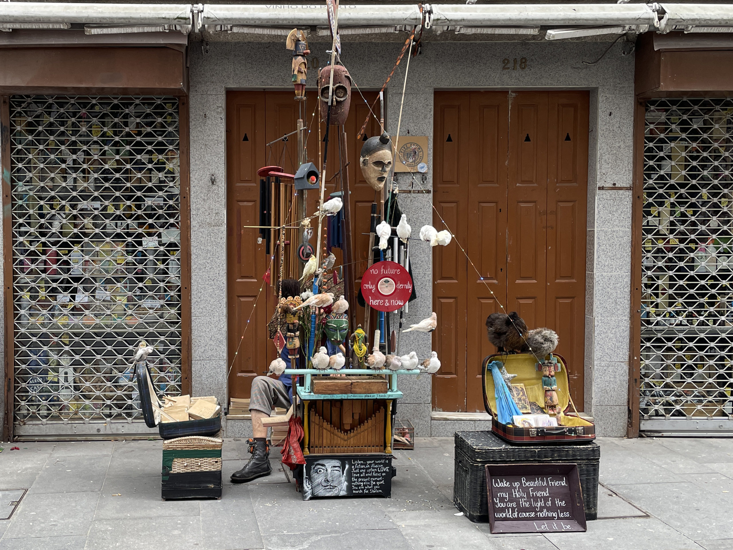 ポルトガルにはストリート・パフォーマーがとても多い。手回しオルガンを演奏しているおじさん。飼われているのか、沢山の鳩たちがオルガンを飾る様に止まっていた。